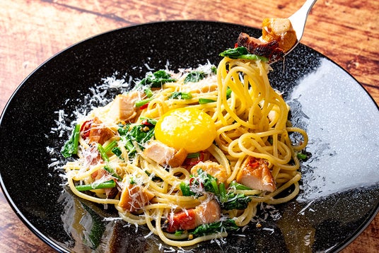 食べた瞬間に感じる「ツルッ!」「モチッ!」とした新食感は、下川六〇酵素卵と北海道小麦のオリジナルブレンドをW真空製法で店内製麺することで実現しました。北海道のブランド卵「下川六〇酵素卵」と、北海道小麦とデュラム小麦でつくられ風味豊かに仕上がる生パスタは鮮度にもこだわっています。