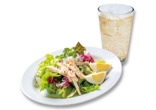 ■「下川六〇酵素卵と鶏むね肉のサラダ」とドリンクセット 430円(税込)