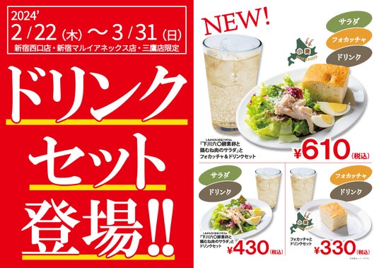 ■北海道小麦を使った「フォカッチャ」とドリンクセット 330円(税込)