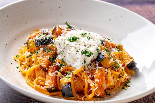 ■フレッシュモッツァレラチーズと「農家のベーコン」、茄子のトマトソース 1380円(税込)