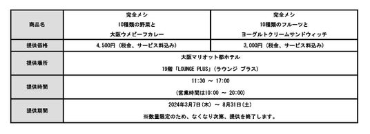今回のコラボは、時代の先端を行くサービスを提供する大阪マリオット都ホテルと、「完全メシ」を通じて現代ならではの食の課題の解決を目指す日清食品が手を組み、ホテルのシェフが誇る洗練された調理技術と日清食品のフードテクノロジーを駆使して完成させた「完全メシ」メニュー2品を、ホテルのレストラン「LOUNGE PLUS」(ラウンジ プラス) で提供します。