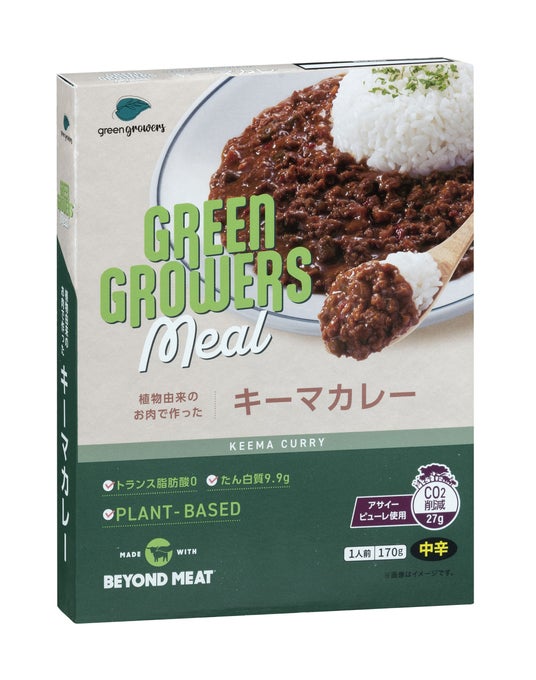 「GREEN GROWERS Meal」は、「BEYOND MEAT(R)」を使用した日本国内初のレトルト食品として、昨年11月に第1弾となる商品の販売を開始いたしました。販売開始以降、お客様からは「本当のお肉みたい」や「手軽にプラントベースの食品が食べられて嬉しい」とのお声や反響をいただきました。今回は、レトルト食品としても認知度が高いカレーシリーズとして「キーマカレー」をラインナップに追加。香味野菜やトマトペーストを使用し野菜の甘味や旨味を引き出したコクのある味わいが特徴となっており、「BEYOND BEEF(R)」とアサイーを使用し、健康と環境に配慮した商品となっています。今後も、日本国内でのプラントベースフードにおける新たな価値を提案しつづけ、食卓の一皿が、地球のサステナビリティや一人ひとりのウェルビーイングにつながることを目指してまいります。