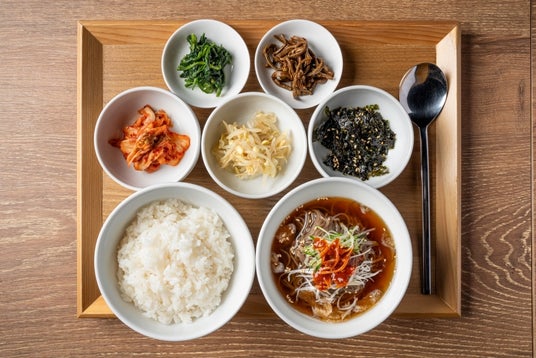 熱々ジューシーに焼き上がったお肉の最強の相棒となるご飯に数種のキムチ&ナムルの小皿料理、汁物を取り揃えた、これだけで定食となってしまいそうなセットメニューをご一緒に。汁物は韓国料理を代表するスープ・麺料理4種の中からお好みをお選びいただけます。