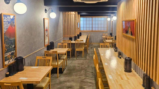 店内は和を連想させる内装で温かみのある雰囲気。一階はカウンター6席、二階はカウンター14席、テーブル4卓8席の計28席をご用意。一人でも、グループでも気軽にご入店いただけます。