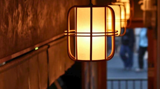 1階カウンター席、天井には京都の路地裏をイメージした照明を配置しておリます。