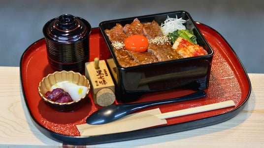 神戸牛を使用した「神戸牛特上焼肉重」。京都のインバウンドのお客様にとても人気な商品です。セット3,850円(税抜)