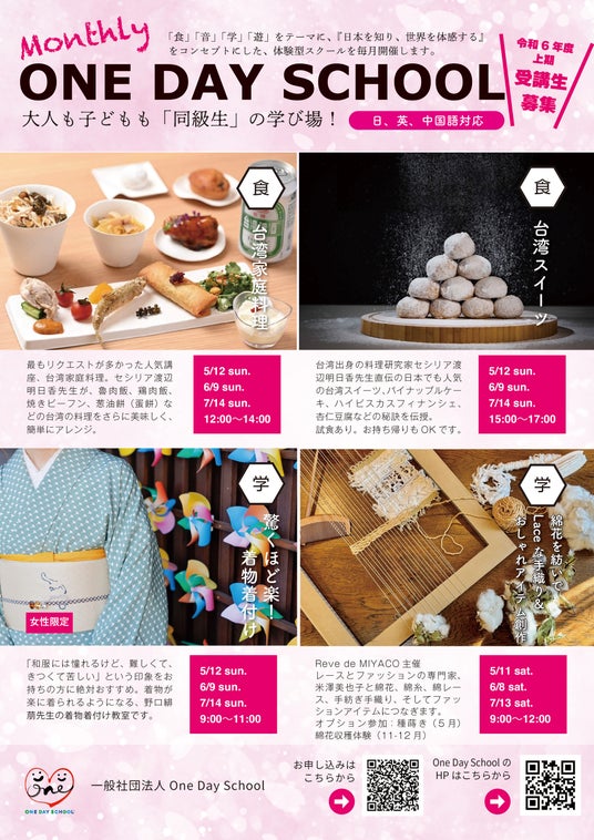 そしていよいよ令和6年5月から、さまざまな世代や言葉に関わりなく参加できる「One Day School」を毎月開催することとなりました。