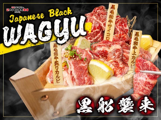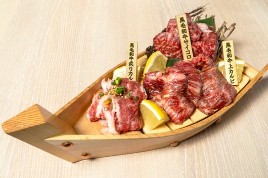 黒毛和牛上カルビ、黒毛和牛サイコロ、黒毛和牛炙りカルビの豪華船盛りが新登場