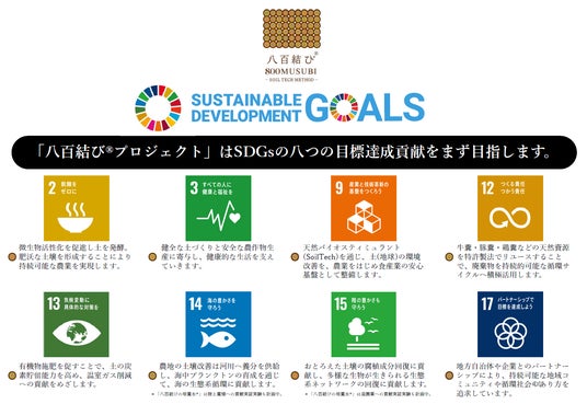 *1 「八百結びの産土(R)」は、独自製法(特許取得)純国産バイオスティミュラントにより各地の土着菌(家畜糞尿等)を発酵活性させた天然有機資材です。