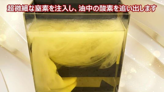 油中の酸素を微細な窒素バブルで追い出す「日清ウルトラファインバブル製法」