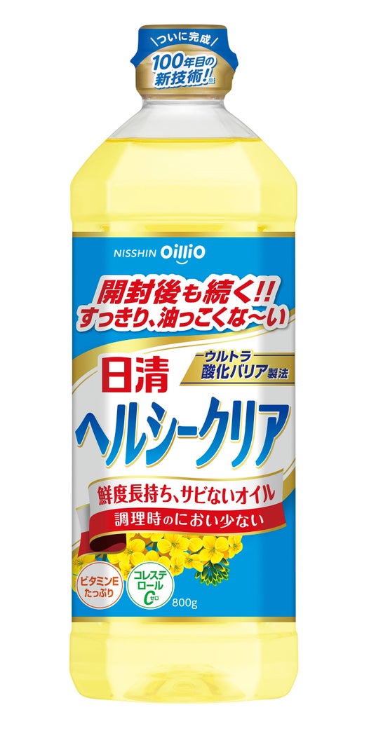 1924年に日本で初めてのサラダ油「日清サラダ油」を発売してから、今年で100年になります。その間、お客さまに安心して、おいしく召し上がっていただくために、当社では油の品質を左右する「酸化」を抑制する技術を次々に開発し、商品に活かしてきました。「日清ヘルシークリア」は、これまでに培ってきた酸化抑制技術を結集し、さらに進化させた革新的な新技術「ウルトラ酸化バリア製法」を採用した商品です。「つくりたての油のおいしさが開封後も持続する」新たな価値をお客さまへ提供してまいります。