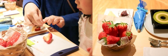 atelier京ばあむでは、苺摘み体験やお客様ご自身で作り出したお菓子を楽しむひと時を、期間限定にて提供します。京都府八幡市の「おさぜん農園」直送の旬のいちごと、京ばあむやあんこ等の素材を組み合わせお客様自らが考案するスイーツを通し、幾重にも広がるお菓子づくりの世界を楽しんでいただきたいと考えています。