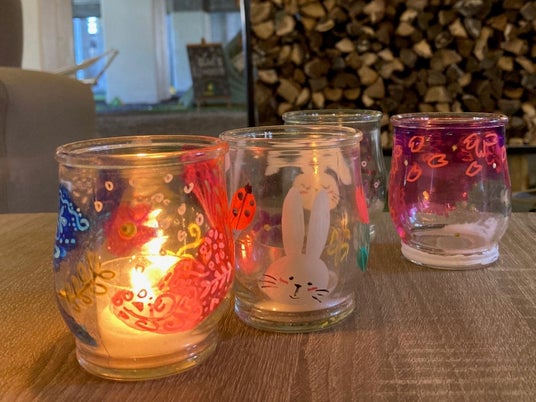 【キャンプ練習場 campass】オリジナルキャンドルホルダーづくりガラスのキャンドルホルダーに絵付けし、オリジナルを作りましょう。ディナータイムを盛り上げてくれるかも…!!ミニキャンドル付き。