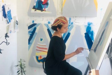 日暮里に拠点を持ち、伝統文化をオシャレに描く水墨画家として活躍中。持ち前の発想力でイメージを可視化した幻想的な描写と女性のポートレートを得意とし、2019年には災害と女性をテーマにした作品が復興大臣賞を受賞。伝統文化を伝える活動として水墨画教室も開講中。