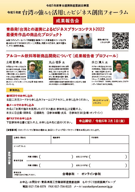 sozoka@pref.aomori.lg.jp (青森県商工労働部 新産業創造課 ものづくり技術振興グループ)