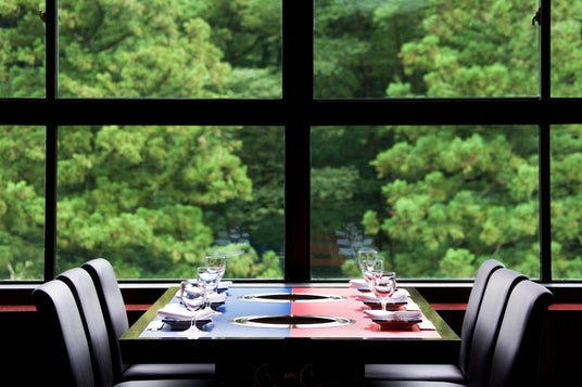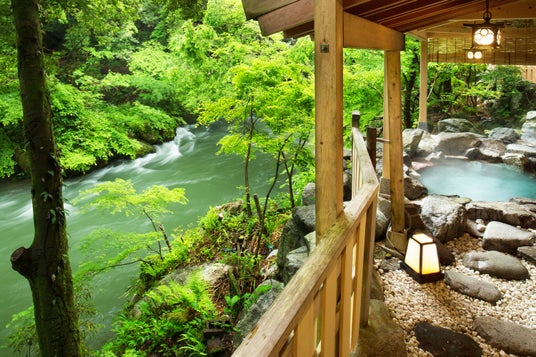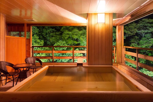 露天風呂や貸切風呂、ロビーラウンジ、客室からは「鶴仙渓」の新緑、深緑、紅葉、雪景色など四季折々の情景をご覧いただけます。
