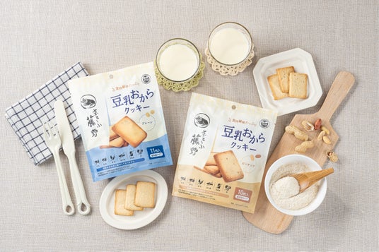 株式会社MDホールディングス(本社:大阪府東大阪市)は、京とうふ藤野株式会社(本社:京都府京都市)とのコラボレーションにより共同開発した『豆乳おからクッキー プレーン』『豆乳おからクッキー ピーナッツ』を、2024年3月1日(金)より、全国で発売いたします。