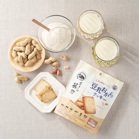 やさしい味わいの『豆乳おからクッキー プレーン』と、香ばしい風味の『豆乳おからクッキー ピーナッツ』は、ともにザクッサクッとした食感とちょうどいい硬さが特長です。