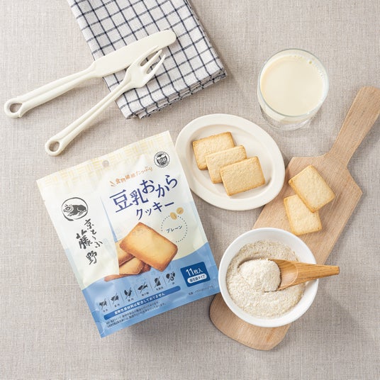 「京とうふ藤野」と共同開発した本商品は、当社のアップサイクルをテーマにした商品の第二弾です。「京とうふ藤野」の廃棄予定のおからと湯葉のくみ上げで残った豆乳を活用し、環境に配慮したクッキーに仕上げました。豆腐の製造過程で発生する栄養価が高いおからと豆乳の廃棄が心苦しいという「京とうふ藤野」の思いと、SDGsが課題とする環境への配慮を重視した持続可能な食品開発に力を入れている当社の思いが合致し、今回のコラボレーションが実現いたしました。