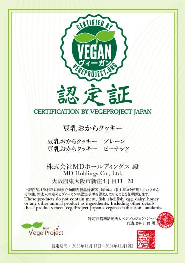 『豆乳おからクッキー』2品ヴィーガン認定証