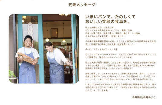 2.上記で抽出したいまいパンの本質的価値を、ウェブサイトやリーフレット、SNS等の情報発信ツールを活用して発信し、従業員とお客様、取引先の方々、地域の人たちに共感の輪を広げる