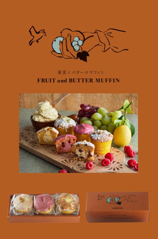 果実とバターをテーマに、様々なフルーツバターの世界観をケーキマフィンで表現しました。丁寧に焦がしたバターと生クリーム・焦がしはちみつ・バニラを使用した、バターの風味豊かな奥行きのある味わいの生地に中央に忍ばせた果実とバターのクリームで、果実感を感じるマフィンに仕上がりました。