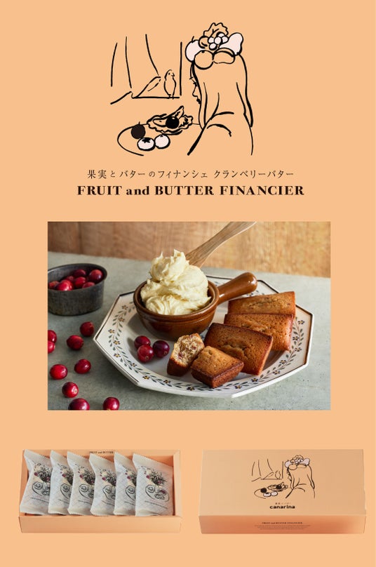 甘酸っぱいクランベリーといちごを、焦がしバターを使用したしっとりとした口当たりのフィナンシェ生地と合わせました。果実と芳醇なバターがふんわりと香り立つ、カナリナならではの、とっておきでしあわせな味わいのフィナンシェです。