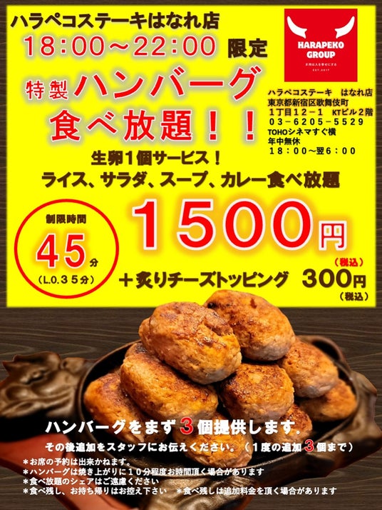 新宿はなれ店「特製ハンバーグ食べ放題」の気になる詳細は?