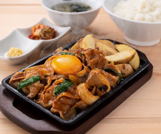 メニューは、ボリュームを望むお客様におすすめなスタミナ焼き定食や熟成カルビ焼き定食など、熱々の鉄板で提供する焼肉定食を始め、女性に人気な冷麺などお客様のニーズに合わせた、豊富なバリエーションを用意しています。カルビ焼き定食 890円(税込979円)はお財布にも優しく、定食や焼肉丼はごはんが大盛り無料なのでお腹いっぱい食べられます。