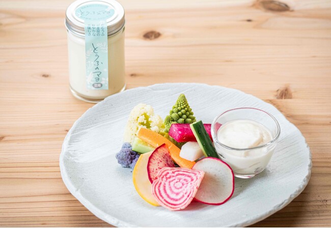 埼玉県新商品AWARD2023を受賞したヤマキ醸造「とうふのマヨ」は、卵を使用せずに植物性素材だけでマヨネーズのようなコクと旨味を実現、豆腐が主役の軽やかなコクのマヨを地場の野菜と共にお楽しみください。
