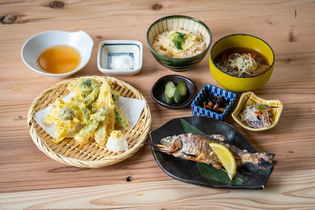 ・渓流の女王山女の塩焼きと山菜天ぷら御膳