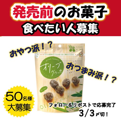 当社は素材の味わいを活かした「さつまいもグラッセ」や「落花生グラッセ」などの「グラッセシリーズ」が2015年の発売以来、人気となっています。今回、様々な素材を試し、おいしさと健康を兼ね備えたオリーブに注目しました。そこで、オリーブ専業メーカーである東洋オリーブ株式会社(香川県小豆郡)の協力を経て、当社のオリジナル商品として発売いたします。