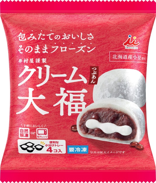 なお、『4コ入 大福(つぶあん)』は、井村屋謹製つぶあんとホイップクリームを包んだデザート仕立ての大福にリニューアルし、『4コ入 クリーム大福(つぶあん)』として登場します。