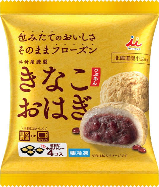 このたび、「冷凍和菓子4コ入シリーズ」の味わいにさらにご満足いただけるよう、シリーズ初めてとなる大幅リニューアルを行いました。今回のリニューアルでは、お値段はそのままに、リニューアル対象の4品に使用する小豆を、北海道産小豆に変更しました。小豆の風味豊かな井村屋自慢のあんを包んだ「冷凍和菓子4コ入シリーズ」で、本格的な和菓子の味わいをお楽しみください。