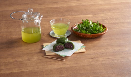 井村屋独自の煮あずき製法※を用いて、小豆の風味濃く炊き上げたつぶあんを、爽やかで冷涼な気候の中で育まれた香りの良い東北産のよもぎを練り込んだ生地で包みました。おもちは、よもぎペーストを2段階に分けて投入する手間をかけたこだわりの製法で、色・風味のよい仕上がりにしています。