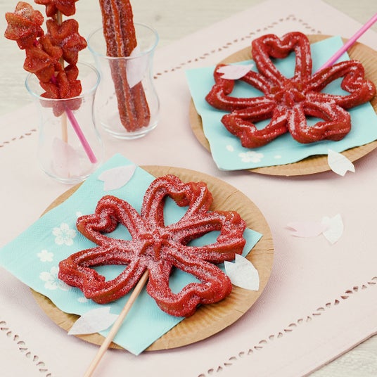 串にさして可愛くデコレーションすれば写真映えすること間違いなし♪さくらチュロスでお花見をより盛り上げよう!チュロスは揚げた時に生地が膨張するので必ず星型の口金を使ってくださいね。