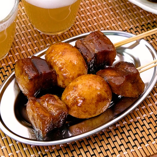 台湾の屋台フードで人気のルーローハンを、串にさしてガッツリおつまみに仕上げた一品!手を汚さずに食べられるのと、新しい見た目は話題になること間違いなし?!