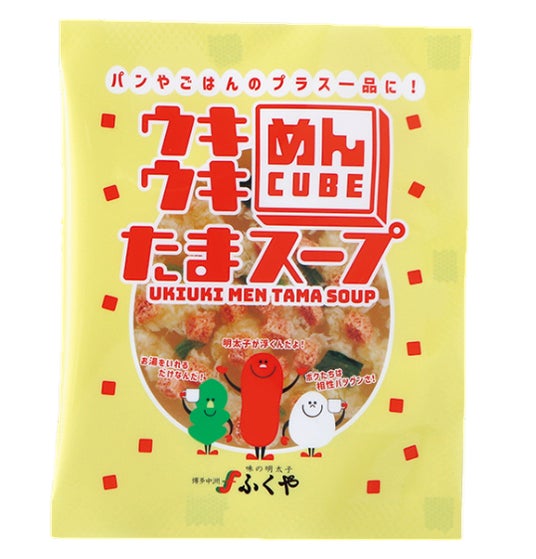 明太子の粒や調味液をフリーズドライ加工しキューブ状にしたもので、液体の中でも崩れずに浮きあがります。スープの底に沈まない為、他の具材と一緒に味わえるのもポイントです。