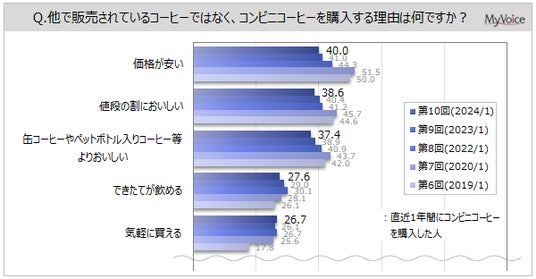 直近1年間にコンビニコーヒーを購入した人に、購入理由を聞きました(複数回答)。