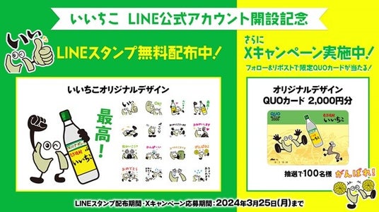 iichikoスタイルXアカウントでは、フォロー&リポストキャンペーンを実施します。いいちこオリジナルLINEスタンプのキャラクターを使用した『オリジナルQUOカード 2,000円分』を抽選で100名様にプレゼントいたします。