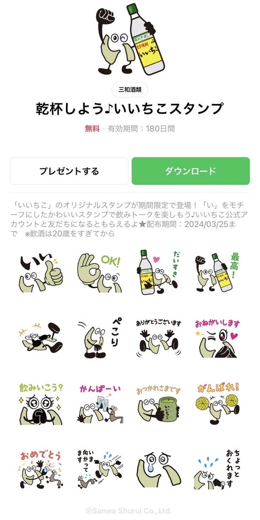 2月27日から3月25日までの期間限定で、いいちこオリジナルLINEスタンプを無料配信いたします。