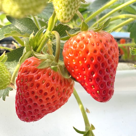 日照時間が豊富な田原市の風土を最大限に活かして栽培された苺。全国初の取組みとして栽培にミネラル豊富な伊良湖温泉水を使用しており、酸味と甘みのバランスが良く、コクがあり、深みのある味わいが特徴です。