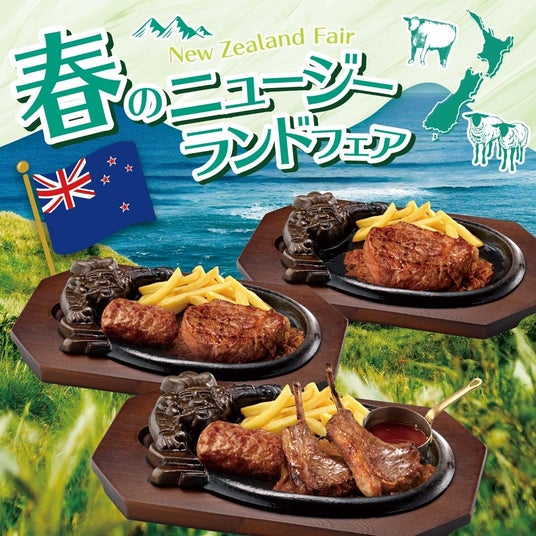 3月はイベントやお祝いゴトが多くなる月。ステーキハウス ブロンコビリーでは、ニュージーランドの豊かな大自然で育てられた仔羊肉と牛肉が楽しめる『春のニュージーランドフェア』を3月1日(金)より期間限定で開催いたします。