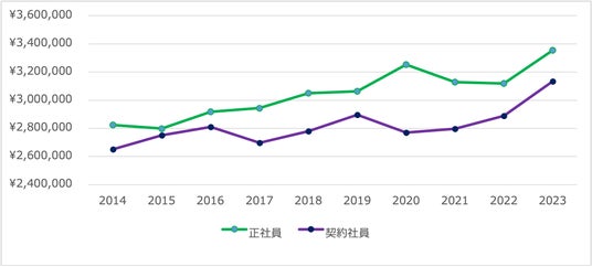 雇用形態別給与額推移:年収(正社員・契約社員)
