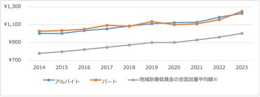 雇用形態別給与額推移:時給(アルバイト・パート採用)
