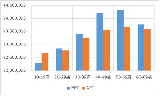 男女別採用時年収(2023年1月~12月)
