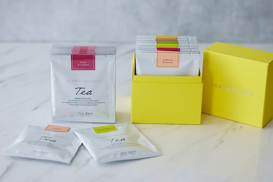 「ティーコレクションボックス イエロー」は、この時季しか出会えない3種(ローズ&カシス、ジャスミン&ピーチ、レモングラス&グリーンルイボス)と、定番の3種(モロッカンミント、ルイボス&ローズ、エルダーフラワー&カモミール)のアソートボックス。「ティーバッグクリアボックス 6枚入り」は、お好みのフレーバードティーがたっぷり6杯分たのしめる詰めあわせです。
