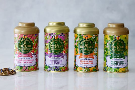 プロヴァンスの老舗菓子ブランド「ル・ロワ・ルネ」と聞けば、フランスではその名を知らない人はいないほど。100年以上の長い歴史の中で培われてきたレシピと製法を現代へとつなぐ、その名を馳せたメゾンからハーブティーが登場です。プロヴァンスの薬草瓶にインスピレーションを得た美しい缶におさめました。