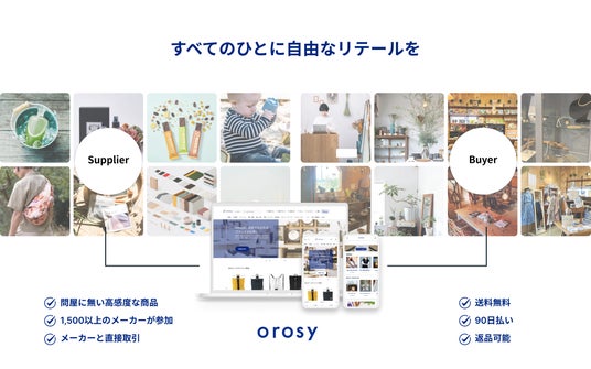orosyが卸取引における両者の金融・在庫リスクを引き受け、「90日以内後払い」「売れ残り在庫は返品可能」「送料実質無料」など、直接取引よりお得な仕組みを提供しています。