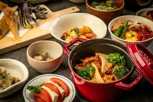 株式会社DDグループの連結子会社である株式会社ダイヤモンドダイニング(本社:東京都港区 代表取締役社長:松村 厚久、以下「ダイヤモンドダイニング」)が運営する「小割烹おはし ゑびすりびんぐ(コカッポウオハシ ヱビスリビング)」では、ベジタリアン及びヴィーガンのお客様に対応した「野菜が主役の晩ごはんコース」に、2024年3月4日(月)より、春の新メニューをラインナップするほか、老舗茶園「京都宇治 藤井茶園」のお茶を使ったオリジナルカクテルを新たに展開いたします。
